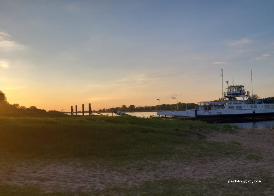prachtig plekje bij de pont. Restaurant en bakker dichtbij. Duidelijk bord waar je mag staan.