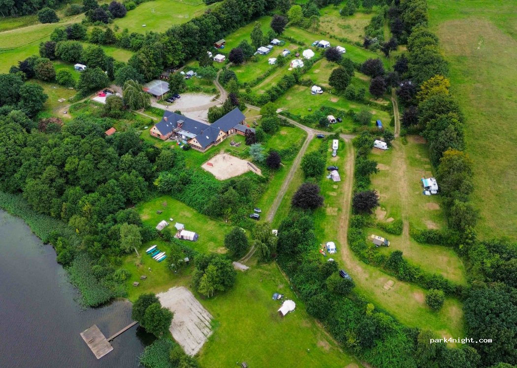 Ein uriger Campingplatz, hier werden die Frühstücksbrötchen noch selbst gebacken. Der Platz ist ideal für Naturliebhaber, sehr ruhig gelegen. Abends wird im Feuerraum bei echtem Lagerfeuer musiziert, Musikinstrumente sind teilweise vorhanden, oder werden von den Campern mitgebracht. Es gibt Spül- Koch- und Waschmöglichkeiten im überdachten Außenbereich und einen kleinen Kiosk in der Rezeption. Das Angeln am See ist kostenlos. Auch ein Kanu kann gemietet werden.