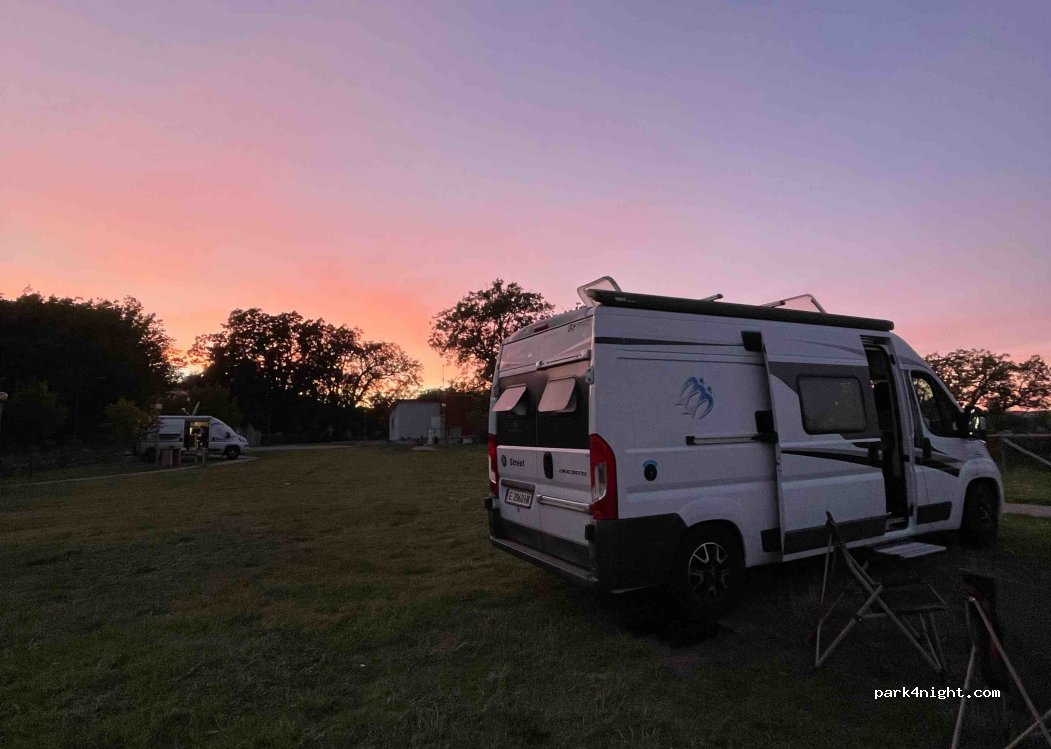Super endroit pour passer la nuit ou quelques jours. Propriétaire très sympathique et l’endroit est très propre et bien entretenu. Nous sommes allés commander des pizzas à la pizzeria Novecentq où vous vous régalerez pour des prix là aussi très correct (entre 5 à 10€). Possibilité de recharger en eau, vider les eaux grises et noires, et électricité pour 10€ la nuit, imbattable dans cette région !