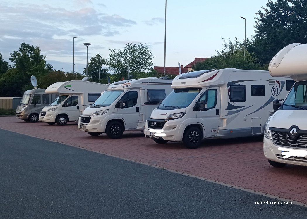 Parking spaces without VE on the public parking lot of a shopping center with Lidl, dm, Takko and Dänisches Bettenlager, specially signposted for mobilhomes. Aldi is approx. 150 m away. Even and paved. Not exactly nice, but practical if you want to visit the old town of Northeim or are passing through on the A7.