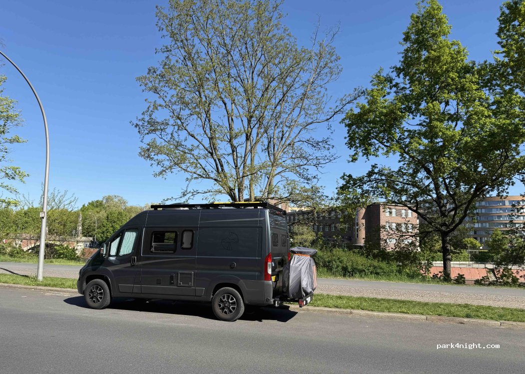 Bin 2 Nächte ohne Probleme hier gestanden, 2 Kilometer zum Ku'damm, sehr sicher durch große Polizeipräsenz. Leider fahren viele Fahrzeuge die Straße und daher etwas laut, aber für Berlin völlig in Ordnung, konnte gut schlafen. Gebührenfrei!!!