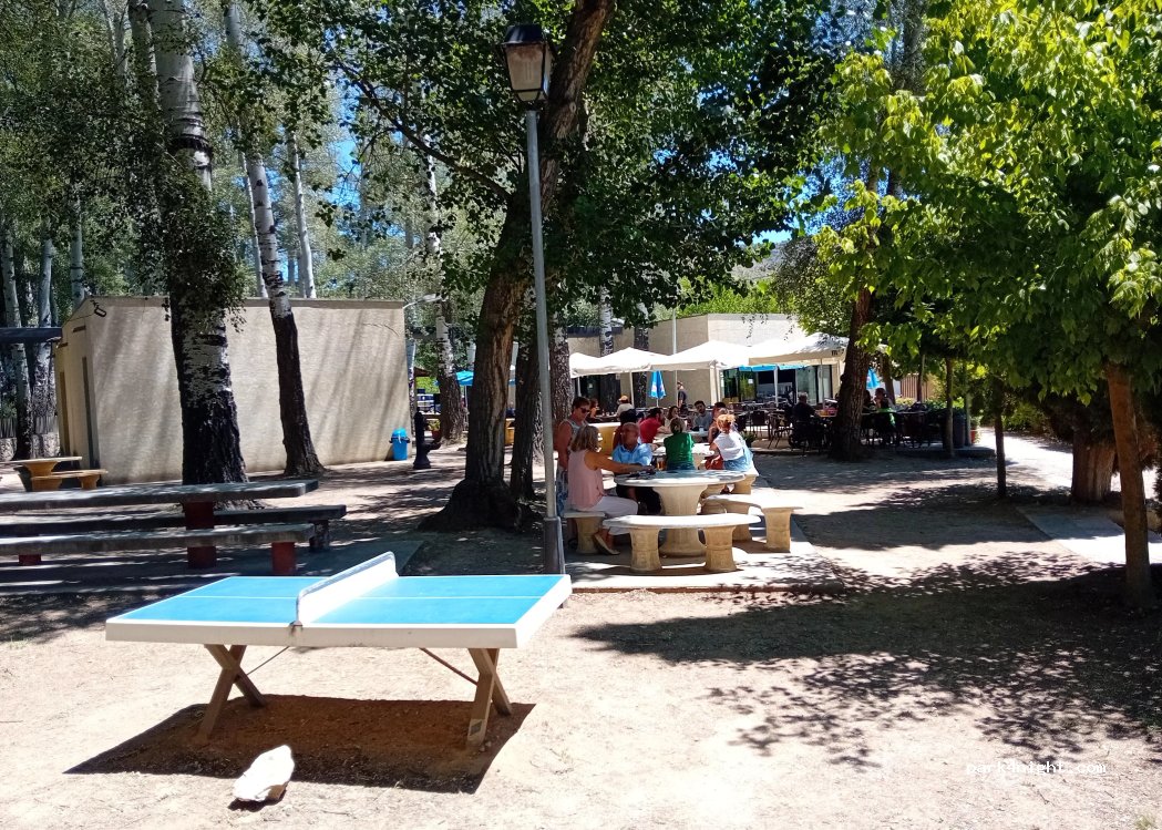 Esta dividida en dos partes, muy sombreada, muy pequeña, pocas ac, y hay posibilidad de bañarse en el río que pasa, nos gustó