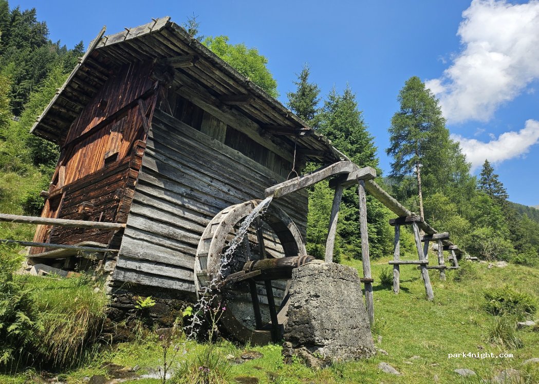 Mitten im schönen Terento gelegen. Großer Schotterplatz mit ausreichend ebenen Stellflächen und kein Camping verboten Schild. Nacht war ruhig. Morgens etwas Trubel wegen Busbahnhof. Hat uns aber nicht gestoert, schließlich parkt man mitten im Dorf.