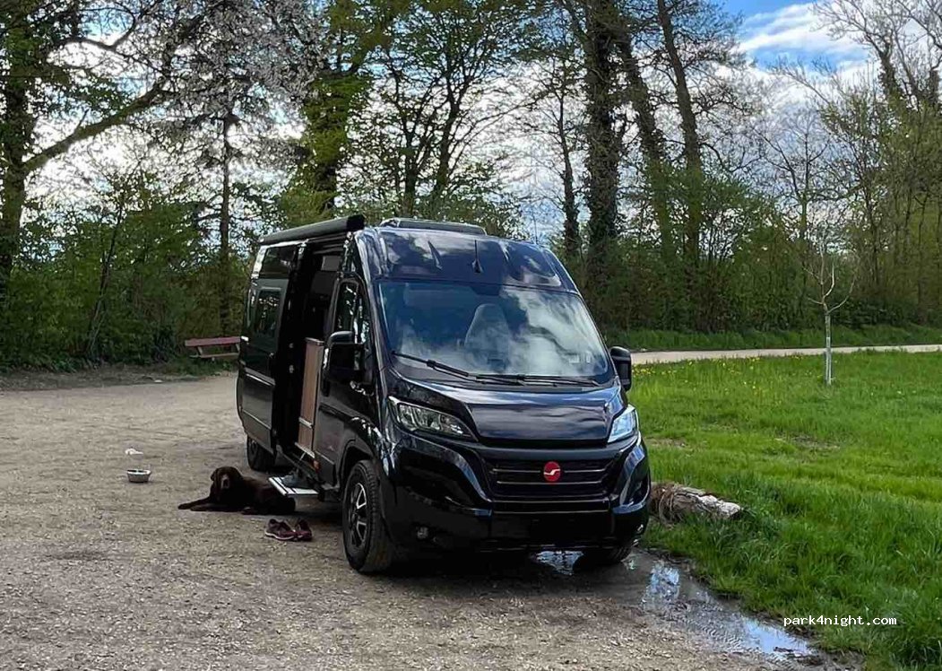 Schöner Platz am Bach mit Feuerstelle. Morgens und abends hat es Fussgänger mit Hunden, ansonsten sehr ruhig. Es hat mehrere Parkmöglichkeiten, aber in der Nacht waren wir alleine dort.