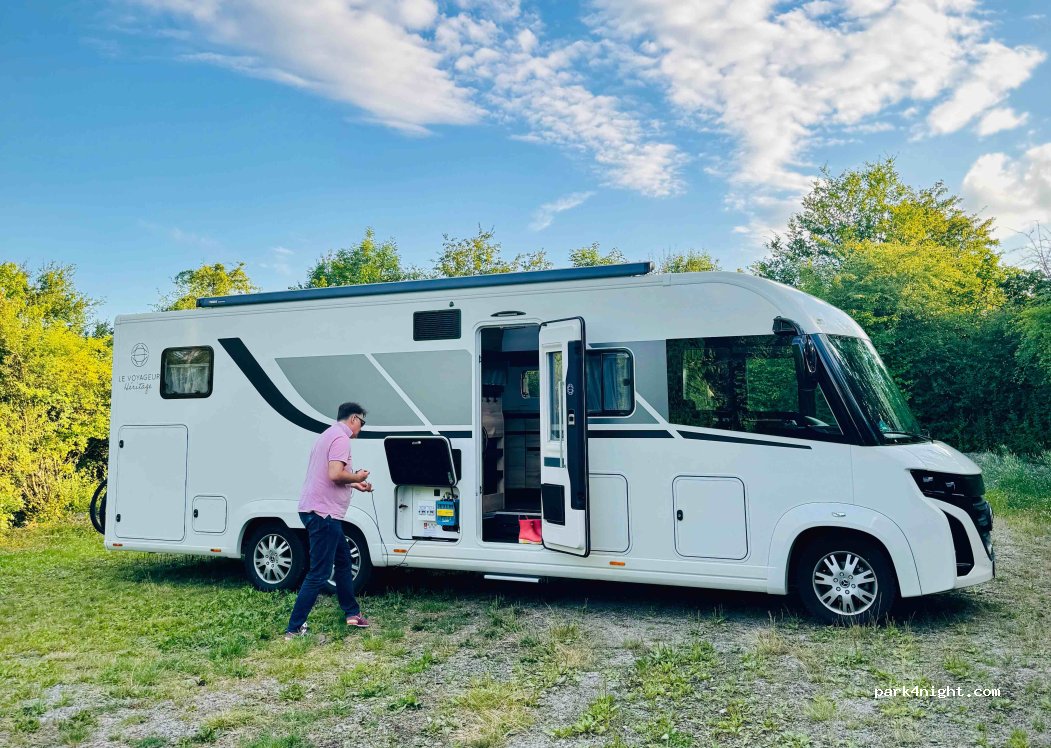 Es gefällt uns sehr gut hier! Die beiden oberen Parkplätze (von drei) sind heute frei von Pkw‘s. Die Golfplatzleitung erlaubt das Übernachten (telefonisch erfragt). Wer Elektrizität benötigt, kann sich einen Schlüssel holen. Das ital. Restaurant „Valle Verde“ ist sehr zu empfehlen. Ja, die A81 ist zu hören aber ca. 400 m entfernt. Wir stehen autark und sind sehr zufrieden hier.