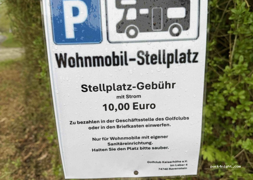 Drei grosse Parknischen oberhalb der Golf-Auto-Parkplätze. Einfach 10 Euro im Briefkasten des Golfrestaurant legen. Schöner einfacher Platz. Die Autobahn ist im Hintergrund zu hören, jedoch für uns nicht störend. Ideal für eine Nacht für autarke Camper. Kein Strom, kein Wasser etc.