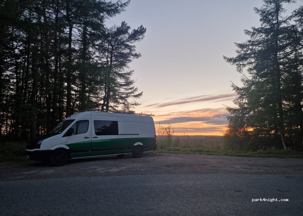 Really pretty quiet little spot…gorgeous walks through the woods and up around the old Roman Camp. Peaceful nights sleep with no traffic, spot is just off a quiet country lane, fantastic view and great for stargazing too…pretty flat space for parking up & plenty of room for LWB vans like ours. As mentioned no facilities about …also we had no phone signal with EE