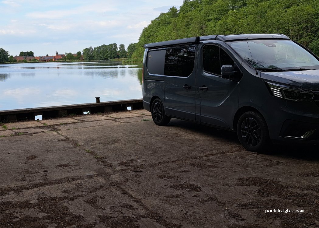 Haben das gesamte Wochenende dort gestanden. Der See ist nicht zum baden geeignet. Angler bleiben dort auch meist über Nacht aber störten sich nicht an uns. Am Ortsrand ist eine Ausflugsgaststätte die von vielen Motoradfahrer:innen angesteuert wird.