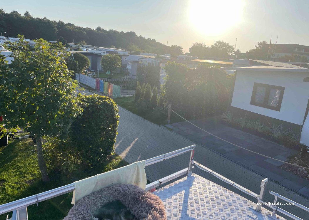 Schöne Stellplätze, ausreichend Platz mit Grün. Direkter Zugang zum Strand (Kurkarte nicht vergessen, sonst kostets 3 €.) Sanitäranlagen sehr sauber. Dusche kostet 1 €. Es sind Restaurants, Fischbüdchen, ein Bäcker mit Café und kleinere Shops vorhanden. Schönes Fleckchen mit gehobenen Preisen.