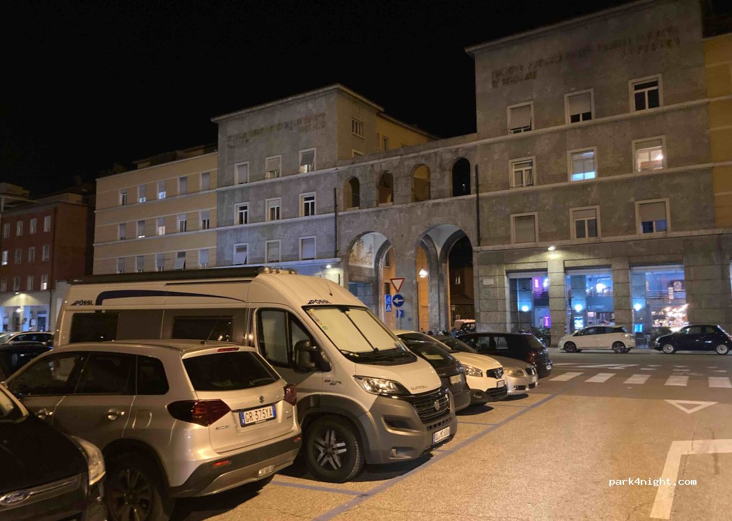 Sehr belebter Platz, 1,50€ Std, an 19 Uhr frei, standen dort für einen Bummel durch Bozen, dafür ist er top, für die Übernachtung auch OK aber sehr viel los und sehr laut durch Autos, Roller, Motorräder und anliegende Bars..