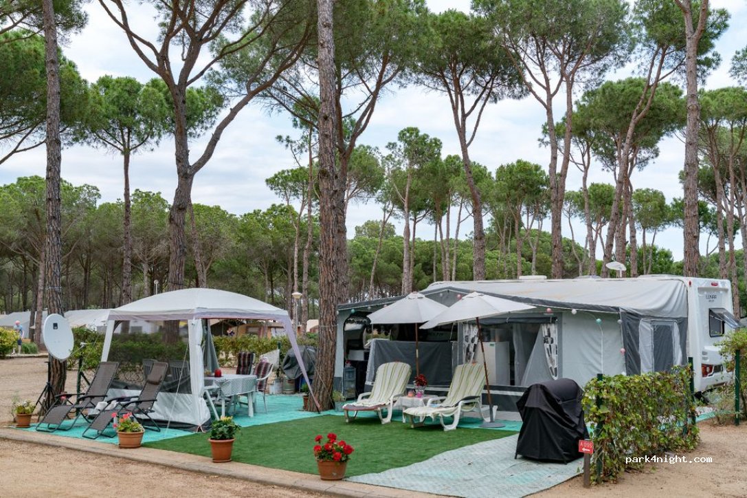 Great campsite to explore the Costa Brava. Large pitches under pine trees. Plenty of space for a campervan and awning. Clean facilities. Free shuttle bus to the nearby beach (only negative is this was sometimes full and you'd have to wait 30 mins for the next one or walk down 25 mins). Didn't use the pool but sounded quite busy with children. The shop was well stocked and staff were friendly.