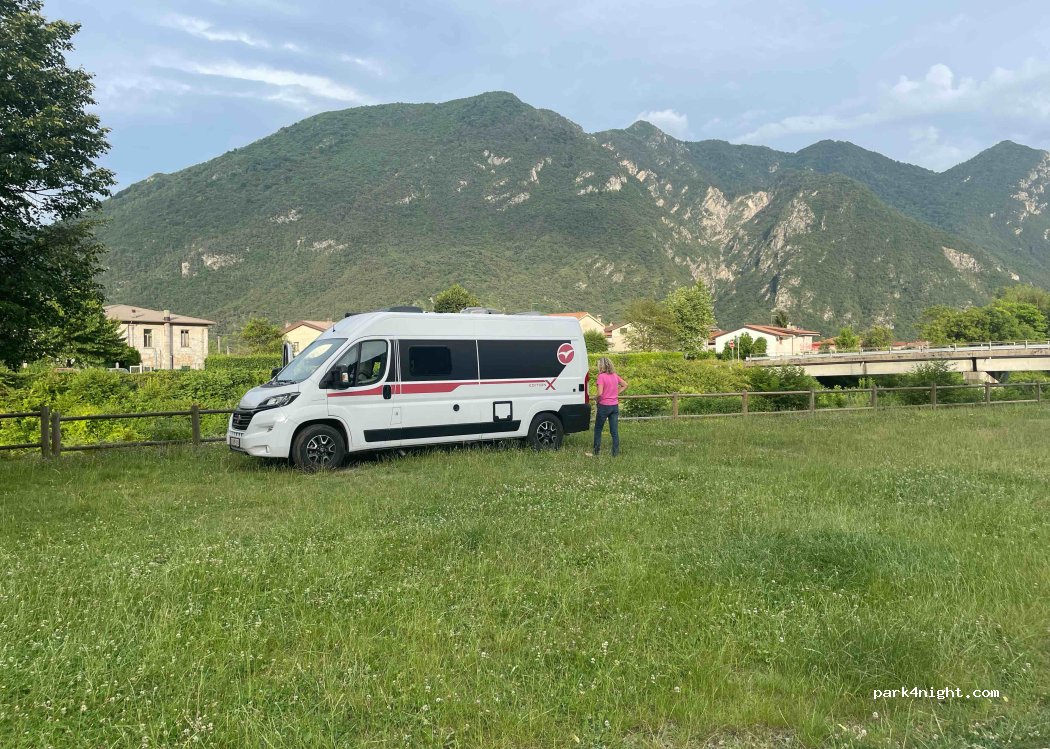 parcheggio super tranquillo e in piano, vicino al torrente e a 10 minuti di bicicletta dal lago. da maggio a settembre 5€ al giorno, unica pecca non ci sono i bidoni