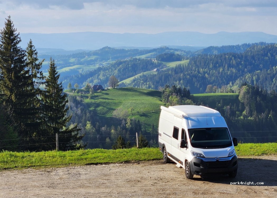 Ein Traum von Ausblick in aller Richtungen. Die Alpenkette und der Jura zum greifen nahe. So kurz vor Silvester hat das Hotel-Restaurant zwar geschlossen, doch der Stellplatz und die dazugehörende Toilette ist geöffnet. Bei schönem Wetter viele Wanderer, aber ab 17 Uhr sind die alle weg und wir standen ganz alleine unter dem Sternenhimmel. Zufahrt mit 8,5m im Schlepptau etwas gewagt, aber ging.