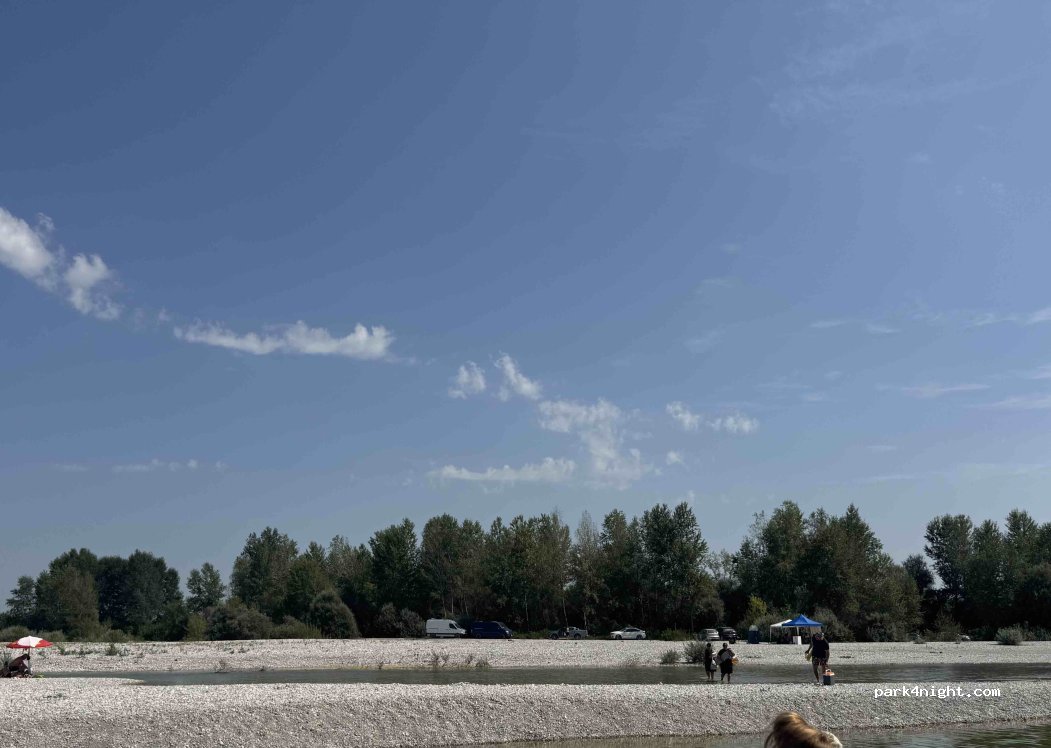 Posto bello e tranquillo. Abbiamo passato la notte senza nessun problema con il nostro van. Di notte non è passato nessuno. Di giorno abbiamo incrociato pochi passanti Fate attenzione al terreno. Ho voluto attraversare il guado per andare sul fiume e sono rimasto bloccato. Attenzione se non avete un mezzo che lo permette Mi hanno detto che nel fine settimana è pieno di persone Fiume balneabile