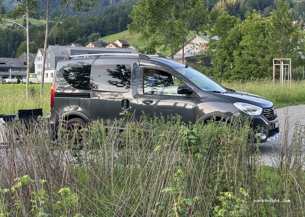 Zuerst dachte ich, nö, da bleib ich nicht. Doch die Entscheidung wurde mir abgenommen da eigentlich überall in der Gegend Campigverbot ist und ich mir nicht meine erste Nacht im Camper versauen wollte. Ich muss sagen es ist ein toller Platz. Ich bin ganz alleine auf dem riesigen Parklatz mit toller Aussicht auf die Berge. Nebenan ist ein Schwimmbad zur Erfrischung und die Toiletten Inder Talstation sind super sauber und die ganze Nacht offen. Kostet zwar 20.- für 24 Stunden. aber das wars
