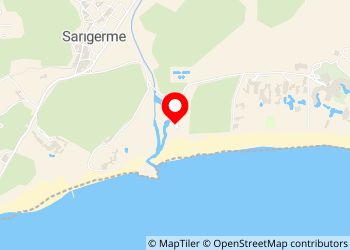 Great location only 100m from the beach. The camper area is small with some shade. The site is shared by all beach users and so the showers/toilets are constantly in use by everyone and therefore get very sandy. Otherwise quite modern and clean. Restaurant/bar at the beach. Black waste in toilet near entrance (presumably grey waste as well). very busy in mid-July, so only sunny parking available.