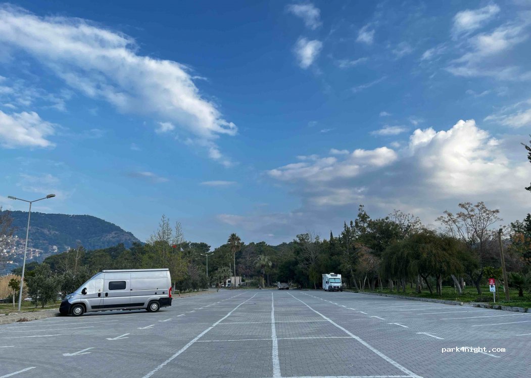 Guter großer Parkplatz ca 100m hinter dem Strand, mit sauberen Toiletten und Duschen (nur kalt). Im Januar war die Schranke offen, abends kam jemand und kassierte 100TL für die Übernachtung. Vorn am Wasser ist ein Bistro, ganzjährig geöffnet, haben Snacks und Getränke zu fairen Preisen. Unterhaltung gibt es, wenn die türkische Luftwaffe ihre Übungsflüge mit Kampfjets absolviert ;-)