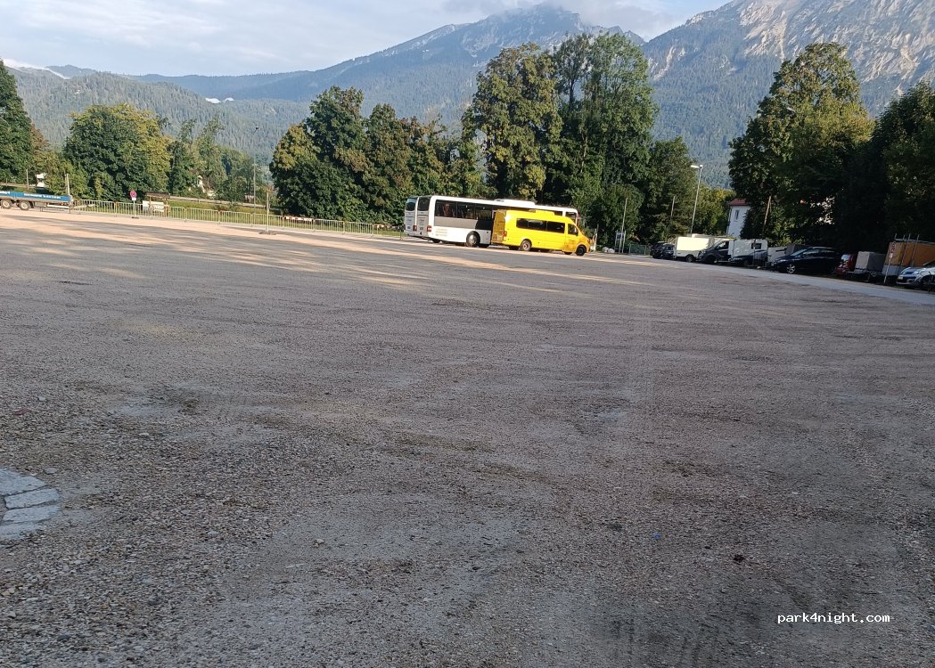 Großer Schotterparkplatz, auf dem man auch nachts anhalten kann, außer an Festen wie Mitte September, siehe Veranstaltungskalender von Bad Reichenhall