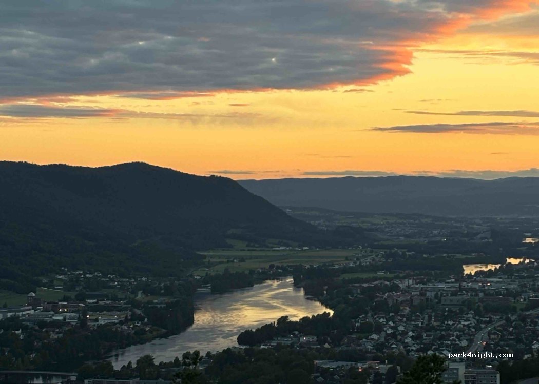 Großer asphaltierter Platz mit guter Aussicht über Drammen. Ausgangspunkt für einige Wanderungen und ein Freiluftmuseum in der Nähe. Da der Tunnel von 23-6 Uhr gesperrt wird, stört man eigentlich niemanden und wir selbst auch nicht gestört.