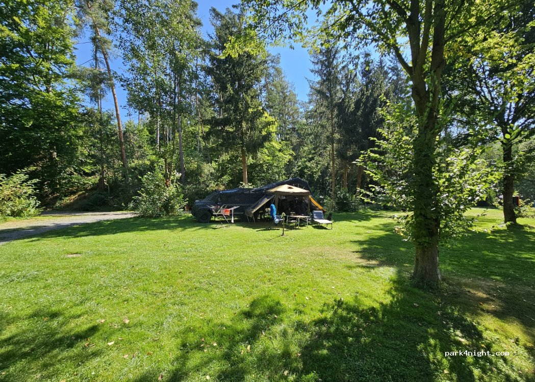 Rustige plaats middenin het bos. Veel vaste standplaatsen. Weg er naartoe is smal maar in de herfst mooi met het gele kleuren palet. Douche aan receptie is erg netjes en ruim. Goed in deze tijd van het jaar voor een nacht. Mogelijkheid tot wandelen vanaf de camping