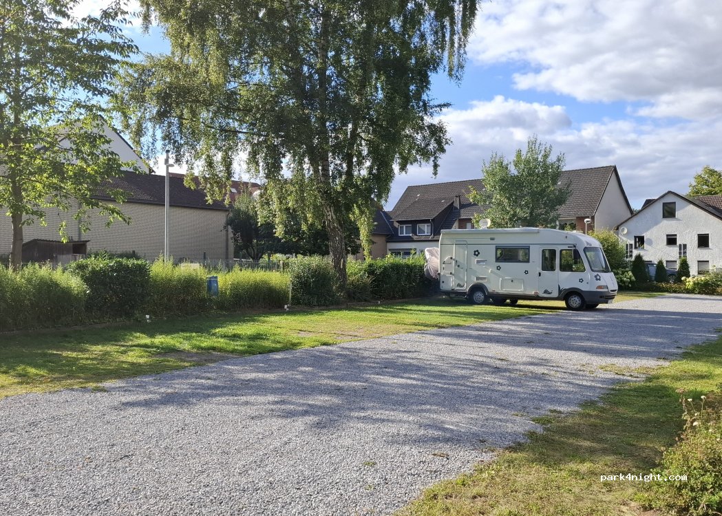 Stellplatz für 12 Wohnmobile auf Kies. Bäcker, Supermarkt und Schwimmbad nicht weit entfernt.