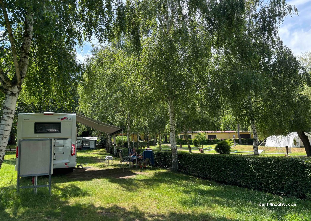 Sehr schöner, ruhiger Platz mit sauberen Sanitäranlagen. Einlass allerdings nur bis 20 Uhr, danach ist das Tor zu. Die Gaststätte schließt auch um diese Uhrzeit.Der Platz an sich ist fußläufig ziemlich weit weg von anderen Gastlichkeiten, gut, wenn man ein Radel mit hat. Planschen kann man 24 Stunden lang. Und nicht zu vergessen... Sehr nettes Personal!!!