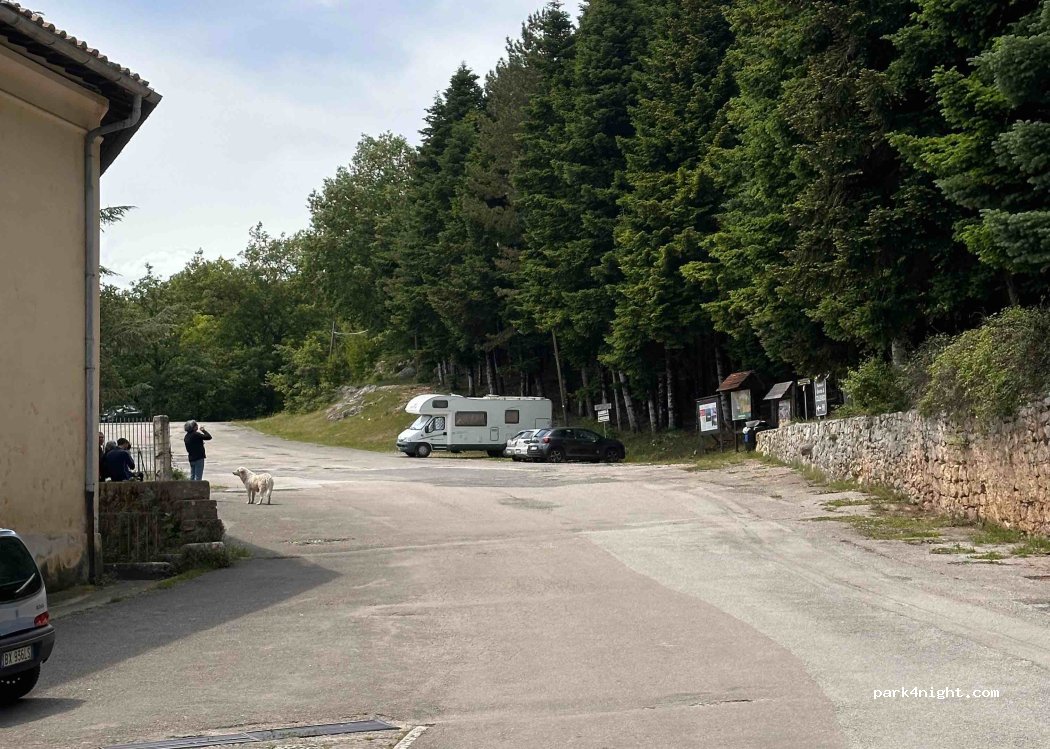 ampio parcheggio, abbiamo pernottato con tranquillità senza problemi per prenotazioni. visita guidata. da non perdere eremo di san Domenico. e il Santuario Madonna delle cese.