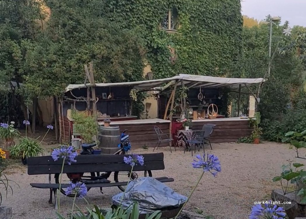 Private guest house with paved parking for 3 campers. Friendly operator. Possibility of using the kitchen. Beautiful garden with wine bar..
