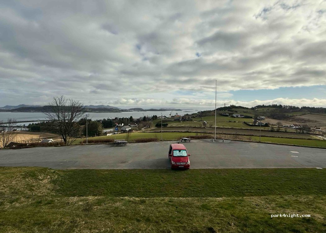 We stayed one night, very quiet and nice views, there were two other vans. Bins and picnic benches, a few locals come to walk their dogs. Good spot for dog owners as there is a beach you can walk down to. Good option for outside Stavanger.