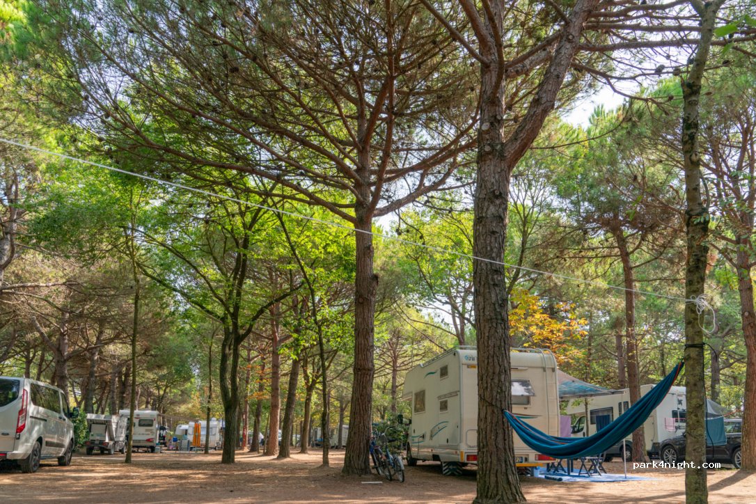 Wir hatten einen schönen Stellplatz im Pinienwald 2 Minuten zum Strand und zu den Sanitäranlagen. Strand war sehr schön und sauber. Die Sanitäranlagen waren zum Teil nicht sauber und leider war kein Klopapier vorhanden. Mit dem Rad kommt man gut nach Punta Sabioni sowie in Richtung Jesolo. Einkaufsmöglichkeiten vor Ort. Preis-Leistung war in Ordnung. Kein free Wifi.