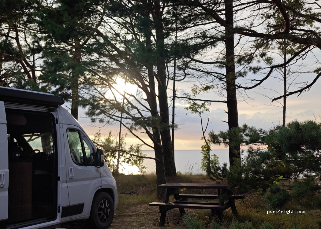 A really nice place right by the sea. Water tap access available, country style toilets available, and a few spots of electrical connectivity also there. Has a restaurant. Nearest shop is in Jurkalne, 5km way. Wil beach access directly from the campsite by the stairs.