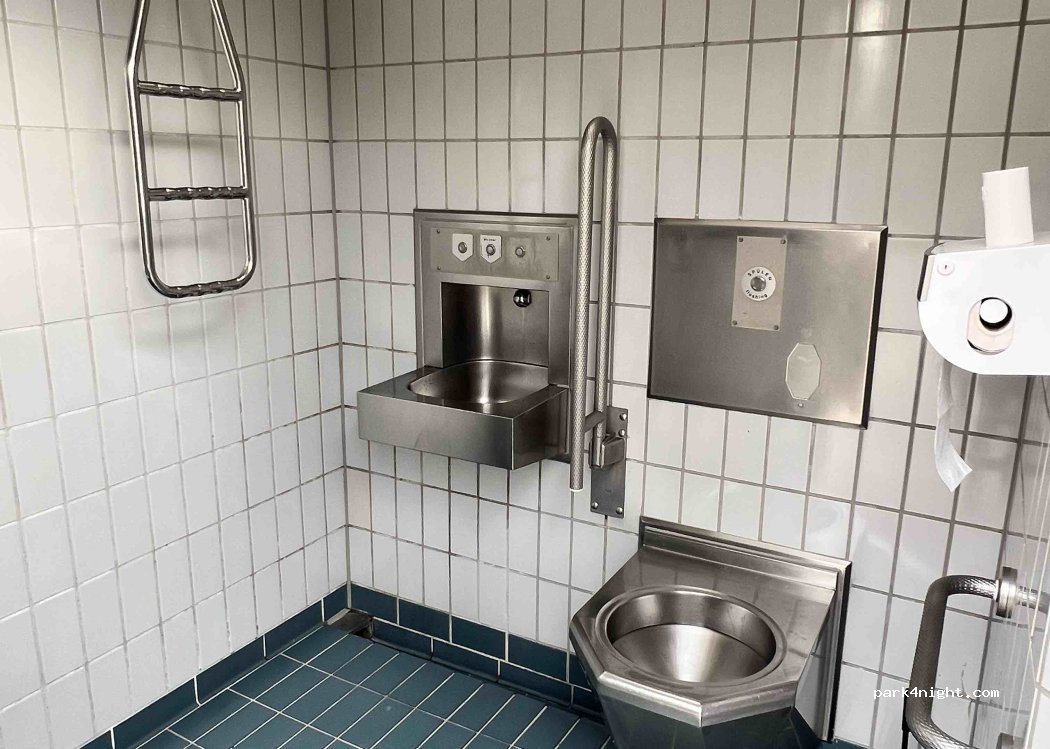 Stark belegter Platz . Cromstahl WC nicht einladend . Entsorgung i. o. Preis inkl. Strom teuer für diese Infrastruktur