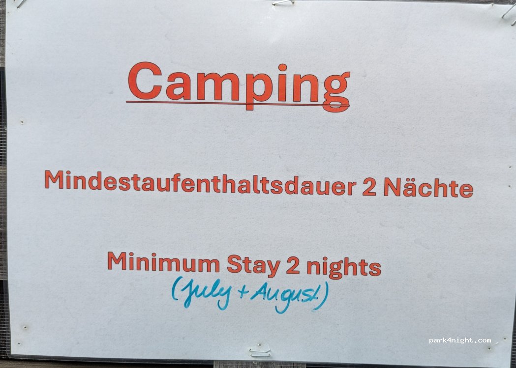 Wir waren am 8.8.21 um 21.30Uhr mit Wohnmobil 2 Pers und kl. Hund da. Platz okay, alles andere mega teuer. 1 Nacht/mit Strom 40,20€ :(( allein für Strom 4,20€. Getränkeautomat um 22 Uhr geschlossen. Glück gehabt > Dosenbier gab es dann noch bis 22 Uhr für 3,10 €. Schade!