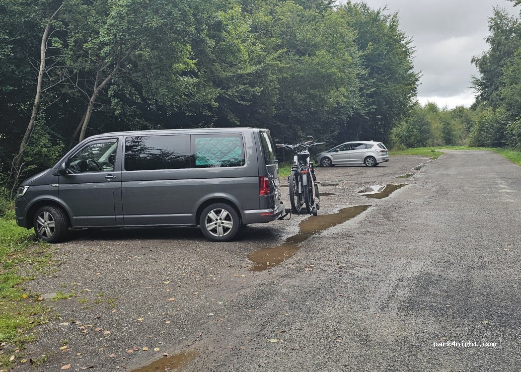 Etwas größerer Parkplatz am Waldrand. Der Verkehr schwächt abends ab. Perfekt für eine Nacht :)