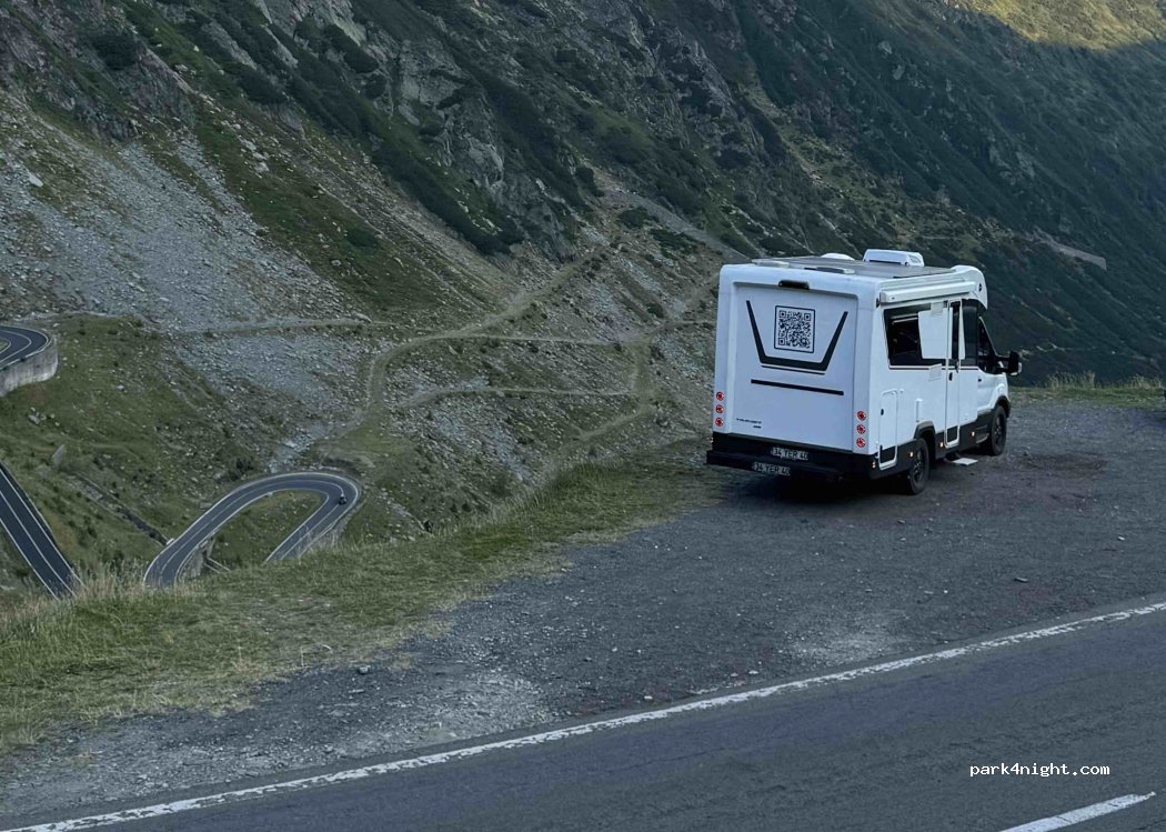 Plusieurs parking le long de la route. Parfois pour un ou plusieurs véhicules. Ne pas se stationner dans les prés. La police passe chaque soir pour contrôler et verbaliser. Nous avons passer 2 nuits prés du lac Balea et ses multiples randonnées. Paysages magnifiques. Nuit calme jusqu'à 9h.
