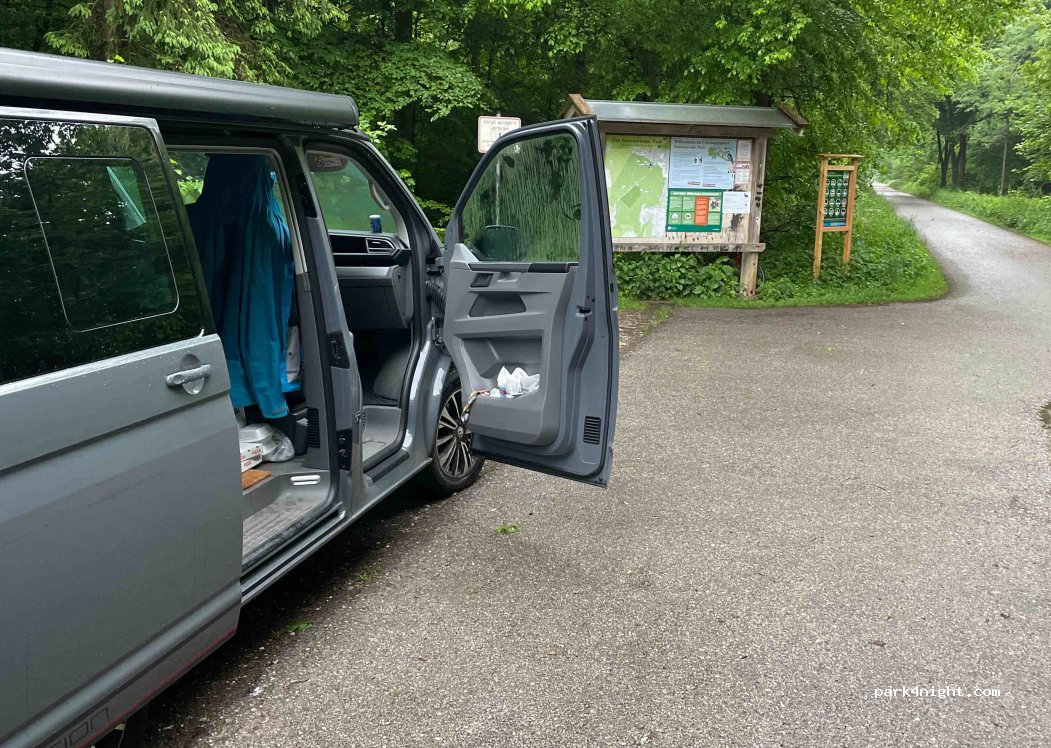 Parking pour randonneurs en bordure du parc Forstenrieder. Près de l'autoroute clairement audible.