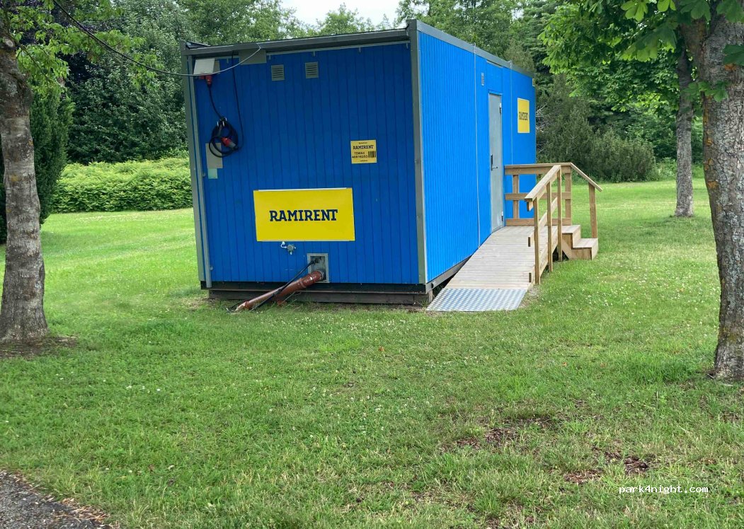 Flott sted å stå, nærhet til butikk og park. Flotte, rene og vedlikeholdte toalett og dusjfasiliteter. Du betaler enkelt med å scanne en QR på infoskiltet. 190sek/24hrs.