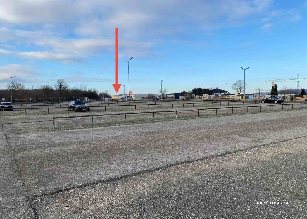 Genug Platz auch für große Wohnmobile. Platz ist geschottert, so dass man auch bei Regen nicht im Matsch steht. Keine V/E aber Toilettencontainer. Übernachtung wie schon von anderen geschrieben nicht erlaubt, wäre aber auch zu laut. 5 Sterne da noch relativ nah zur Stadt (200 m gut fußläufig), kostenlos, genug Platz augenscheinlich sicher.