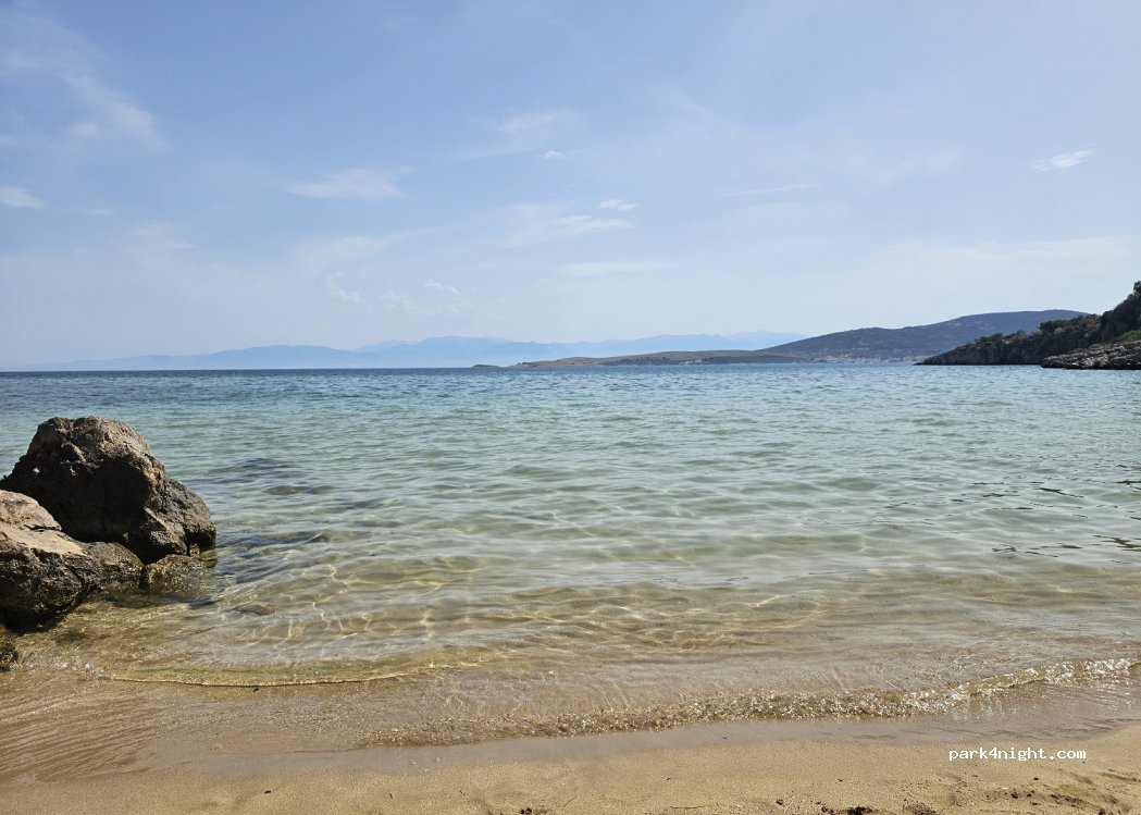 Friedlicher Stellplatz, die Straße ist kaum zu hören (nicht der Rede wert). Die Zufahrt lässt den Lack weinen. Nach unserer Sicht für Wohnmobile ungeeignet. Der nahe gelegenen Strand ist klein und fein, super zum Schwimmen. Sportliche Hundefreunde können Sandburgen bauen. Kaum Seeigel, dafür viele Ameisen am Camper (Leibspeise Apfelgrütz).