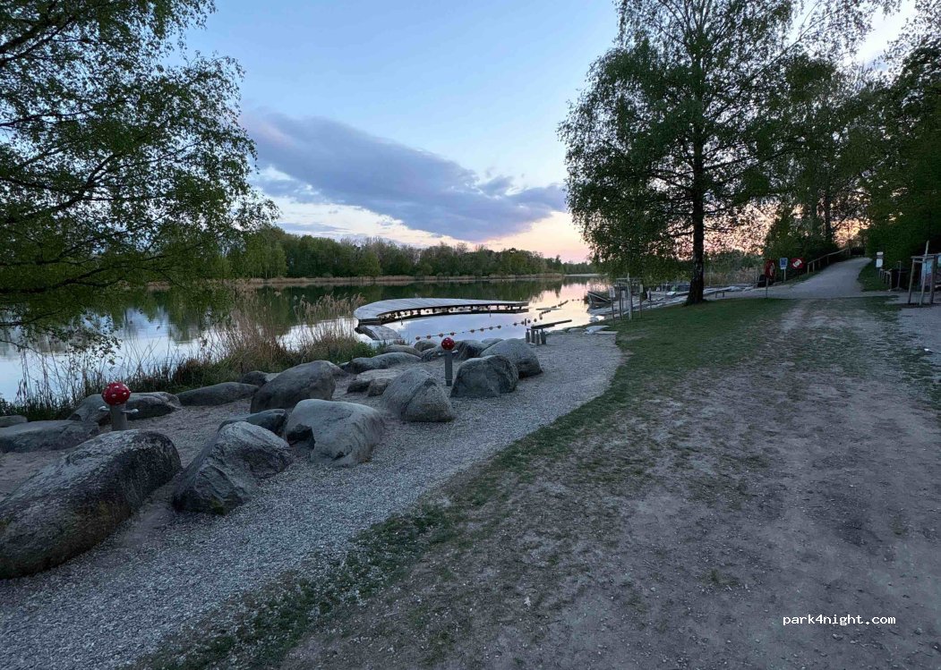 Super Parkplatz am wunderschönen Baggersee, waren den ganzen Tag dort (nicht aber über Nacht). Minigolf super. Spaziergang um den See auch sehr schön, nettes Café mit Liegestühlen im Schatten auf der anderen Uferseite (als Kiosk ausgeschildert)