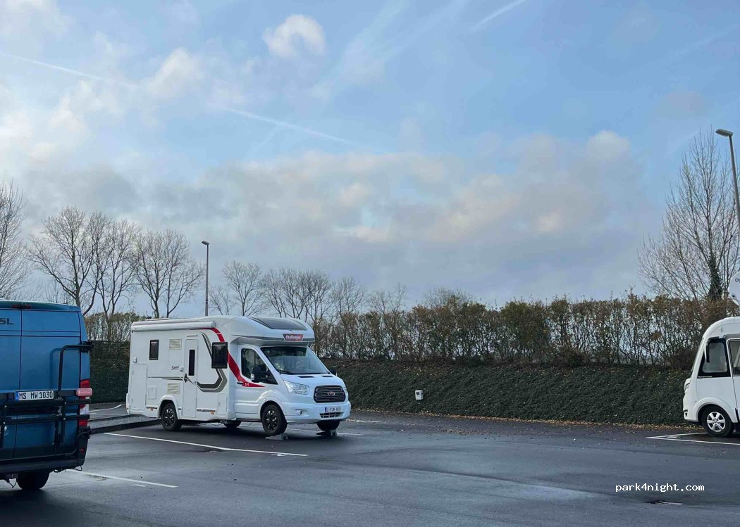 goede slaapplaats maar verder niet aantrekkelijk; gewone parking maar niets van groen of dergelijke. Voor ons met honden niet gemakkelijk deze nog eens uit te laten s avonds. vlak aan drukke baan geen veilige wandelmogelijkheden...