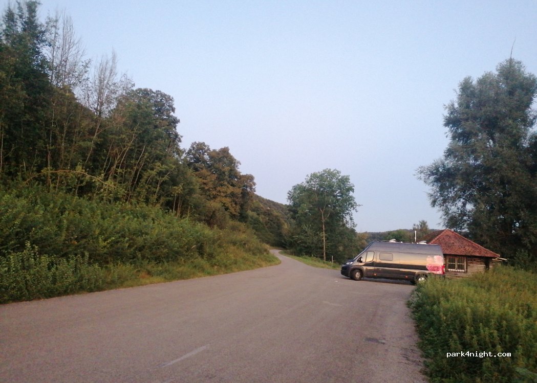 Nice quite and free parking, near a river. In 2 km there is a swimming pool.