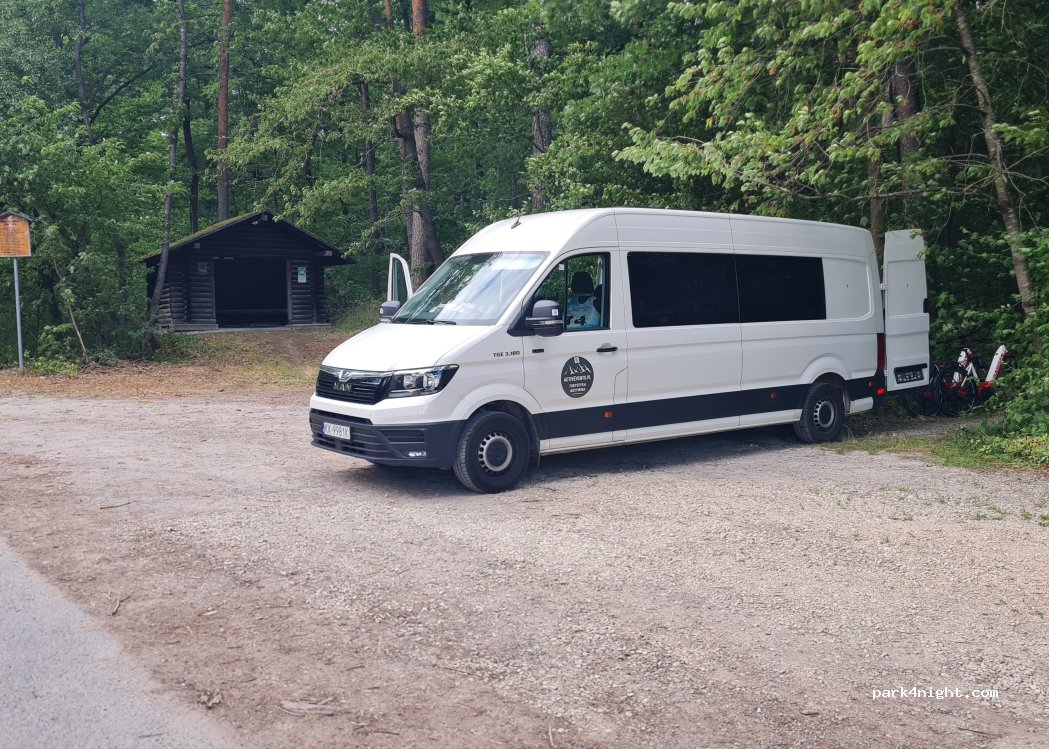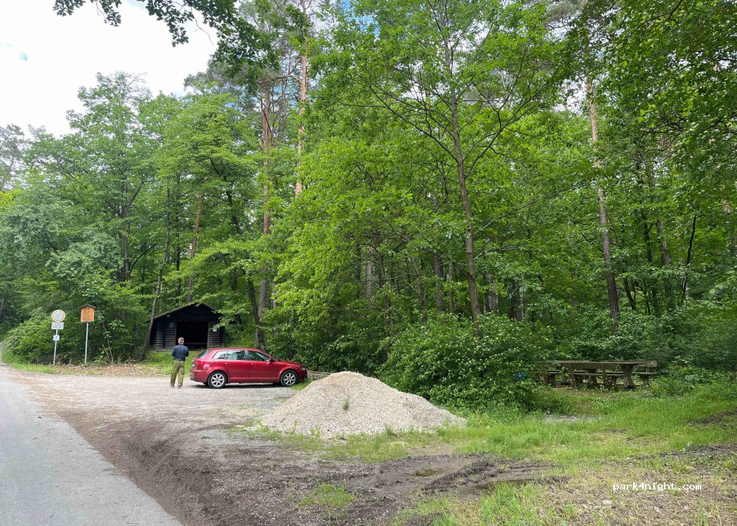 Small parking lot for hikers, not signposted. Nicely located on the edge of the forest, slightly sloping (nothing that cannot be compensated for).