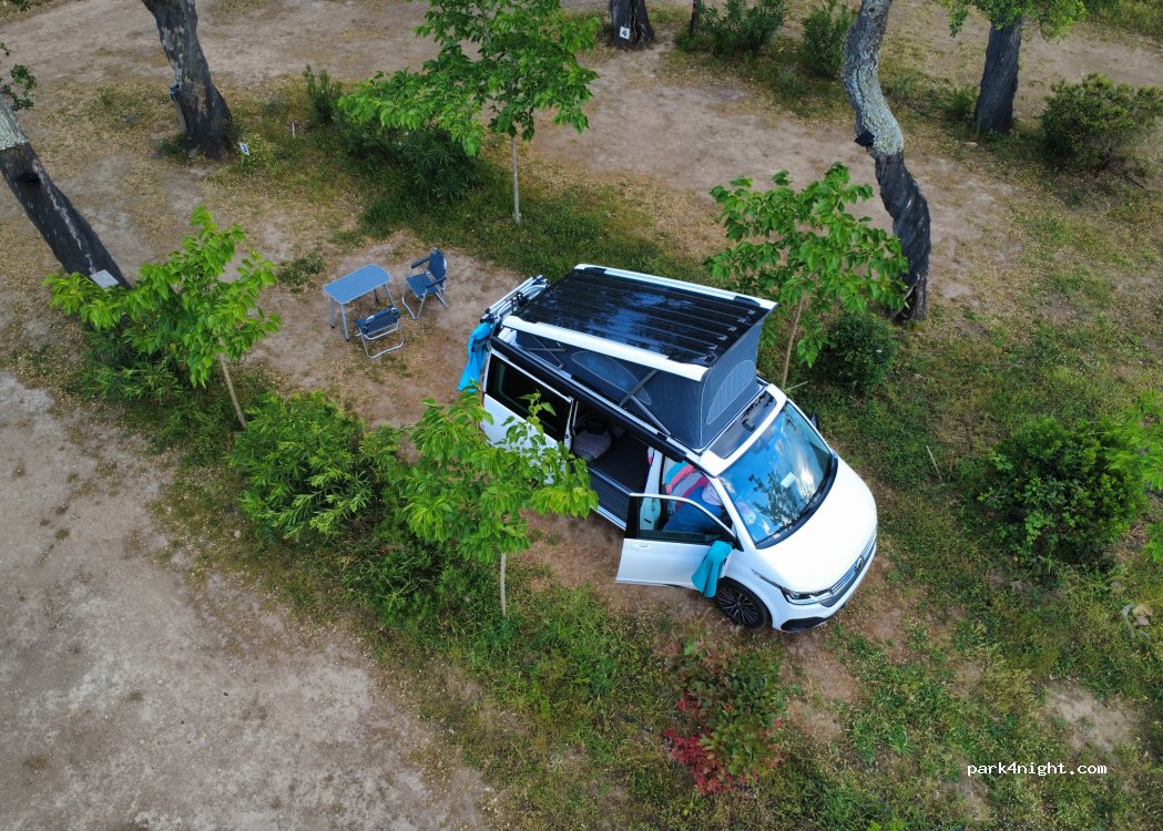 Ambiance décontracter et simple, The Roots camping par excellence! Dans une petite forêt de chêne liège, peu d’ombre, sanitaire sommaire mais l’essentiel y est. Nuit plutôt calme, 20 euros pour un van avec électricité et deux adultes!