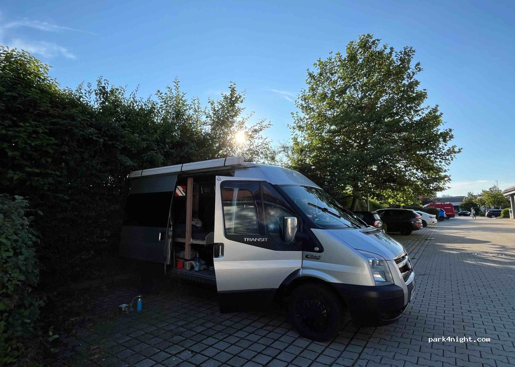 Der Parkplatz ist von einem Aldi Supermarkt. Sobald der Laden geschlossen ist, ist nichts mehr los. Perfekt zum schlafen. Morgens gehen 6 Uhr kamen Mitarbeitende, welche uns freundlich begrüßt haben :)