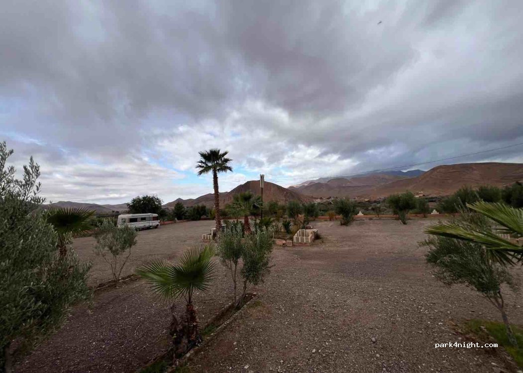 un bon camping avec des emplacements délimités accès facile pour grand camping car ou avec remorque. le camping s'agrandit en surface, mais il faudra rajouter des sanitaires. calme avec belle vue sur la palmeraie. 60 DH la nuit sans électricité 2 personnes.