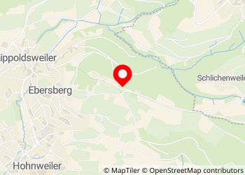 Gravier, parking plat au château d'Ebersberg. Aire de jeux juste à côté.