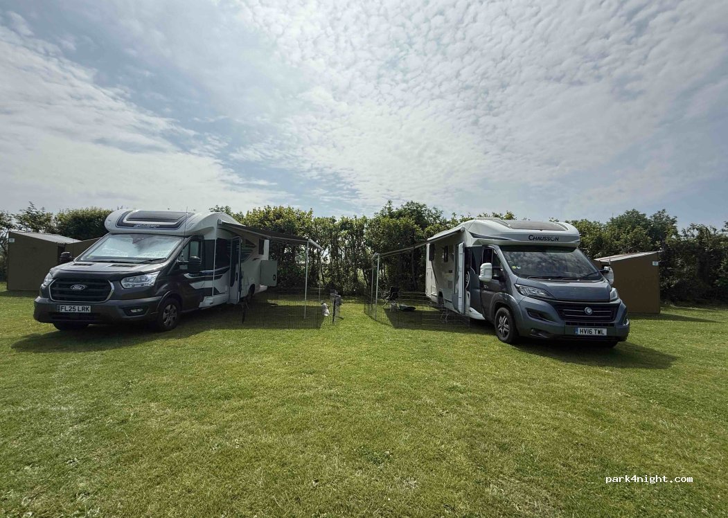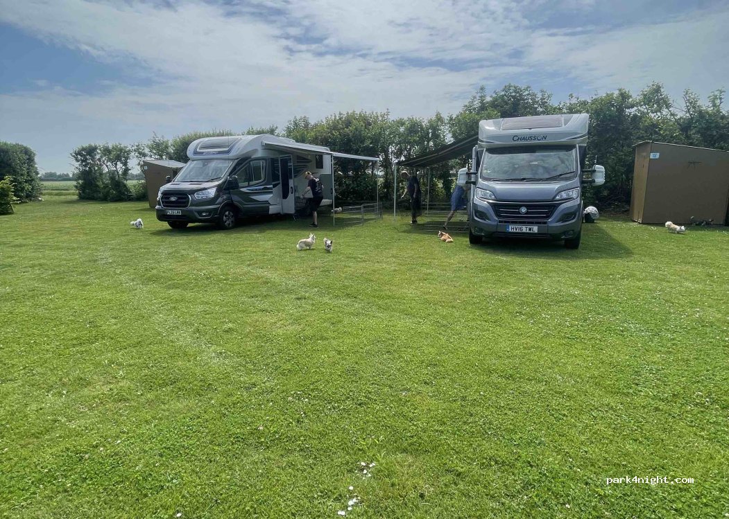 lovely place , owners friendly , lovely big pitches, , dog friendly , open fields to the back , big shed for your bikes , lovely countryside setting , i’d highly recommend and we will defo stay again