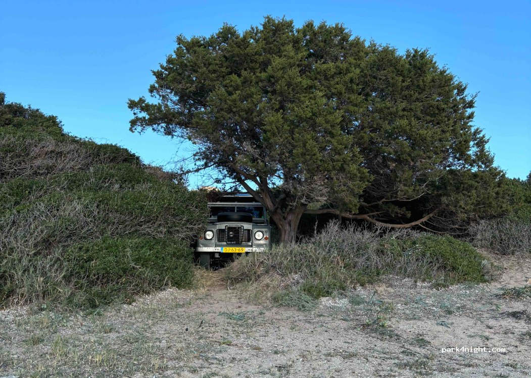 A unos 500 metros por debajo del conocido aparcamiento hay otras pequeñas plazas de aparcamiento. Magníficas vistas de la bahía de Olbia. Acceder a las plazas de aparcamiento requiere algo de valentía, pero es fácil sin tracción a las cuatro ruedas. Apto para furgonetas. Hay algunos bañistas durante el día, pero aun así, es muy tranquilo. Solo 4x4, altura libre al suelo.