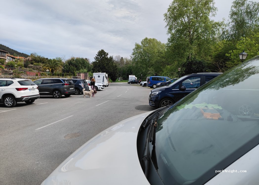 A simple parking lot by a stream and very convenient, positioned as it is on the edge of this lovely town and just a couple of minutes from the dual carriageway to Santander Ferry, thirty minutes away.